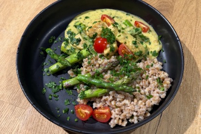 Putenfleisch steckt voller Vitamine, Kalium und Zink – und mit 25 Prozent Eiweiß ist es eine echte Proteinbombe. Zusammen mit frischem grünem Spargel und nussigem Dinkelreis entsteht ein leichtes, aromatisches Putenragout, das perfekt in die Frühlingsküche passt. Mehr über bayerisches Putenfleisch erfahrt ihr hier.